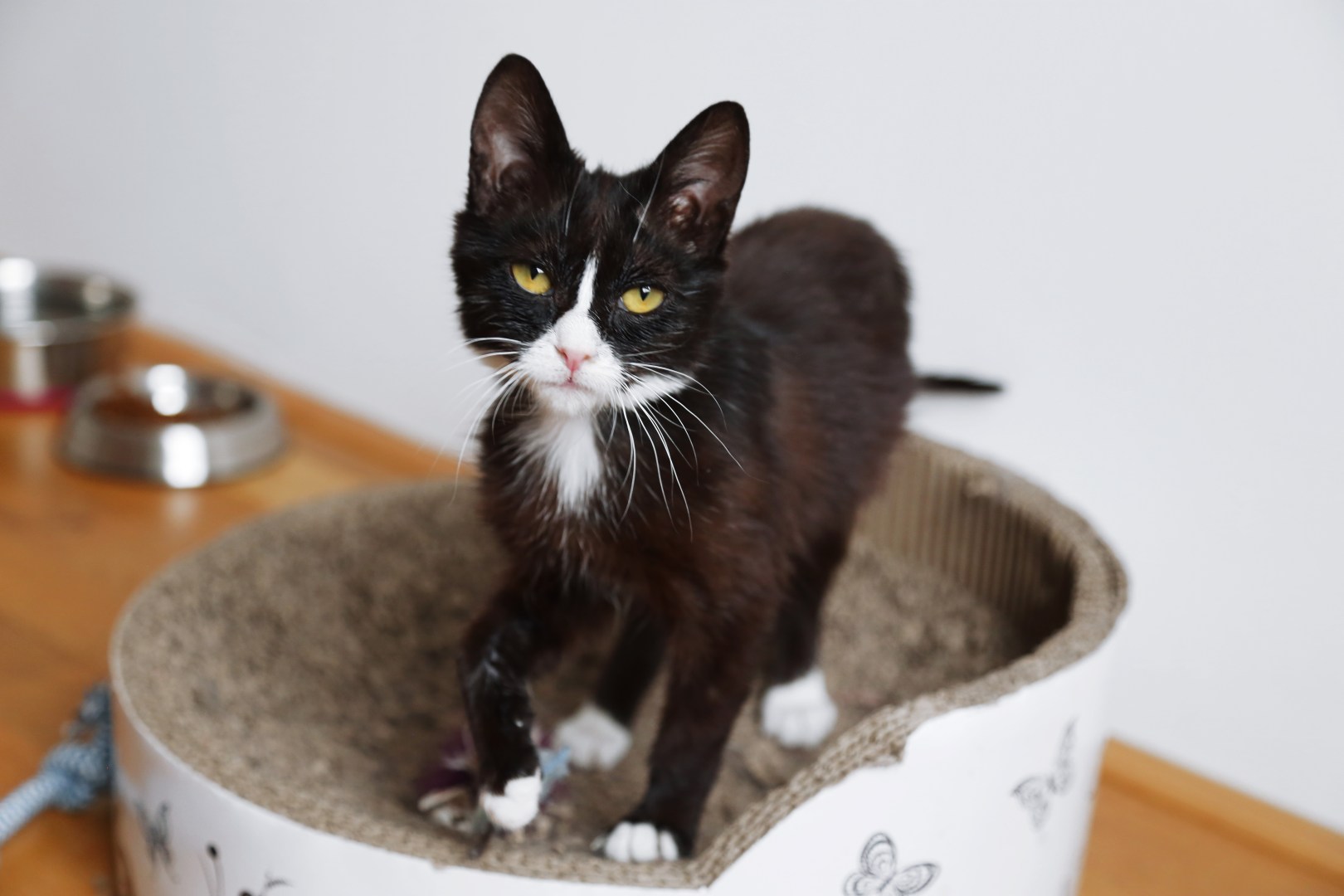 Little Mokka today enjoys playing in a sunny room with tons of toys, warm beds and blankets and all the carton she can scratch. She is very energetic, playful and also loves to lay on our laps.