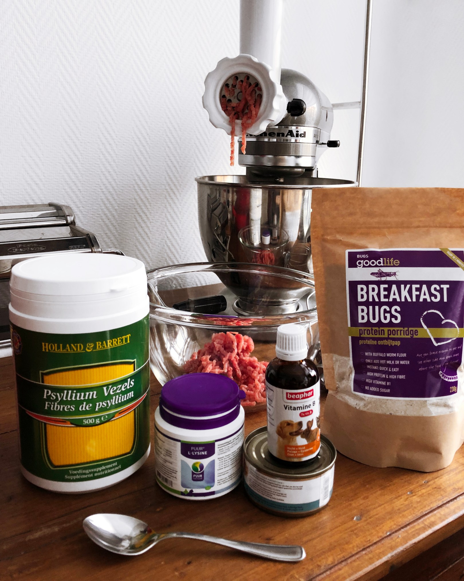 -1/4 tea spoon Psyllium (add when first introducing the raw meat diet)