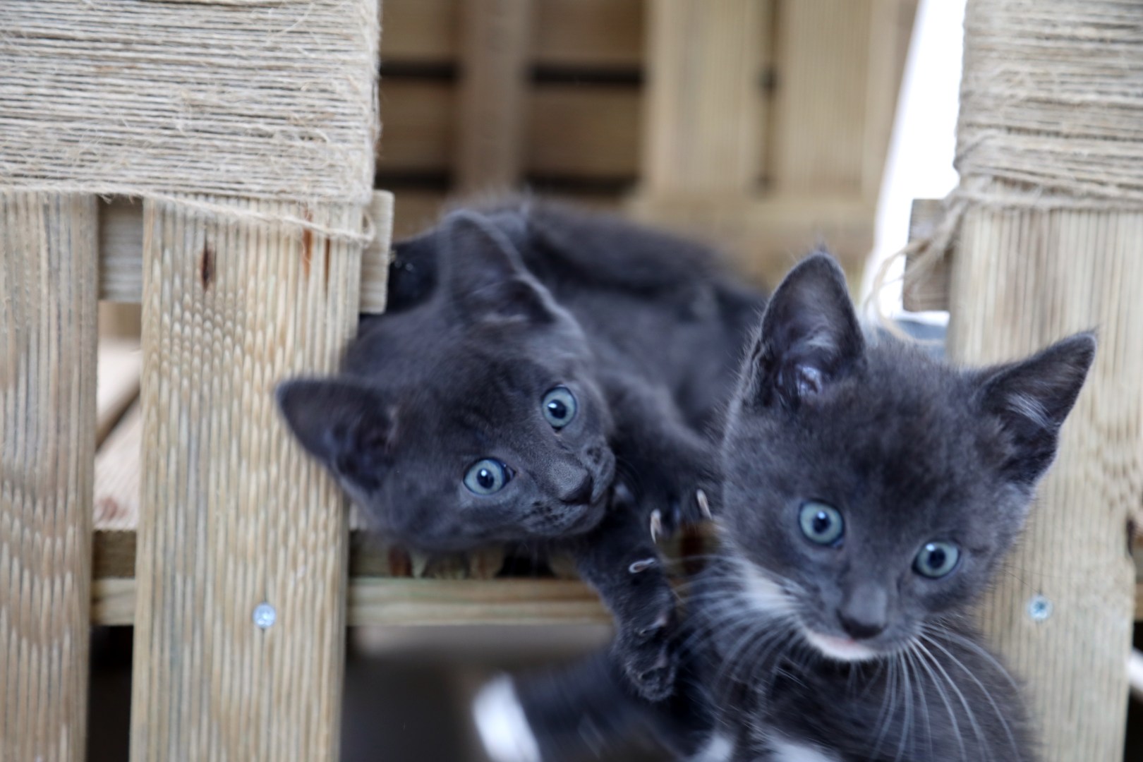 Sky and Sia are siblings who were born in the back garden of a randome home. They were brought inside a very tiny house but the owner of the property didn´t want them so they joined us and now they are looking for a home together. These brother and sister are the perfect partners in crime, they are sweet and funny to watch while they play and jump around the house. They used to be scared of people but now they play with everything and everyone.